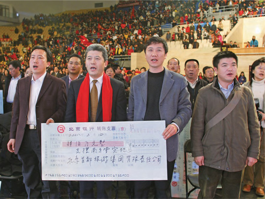 2008年2月,党委副书记、总司理 刘毅代表尊龙凯官网入口员工和企业,为抗 击冰雪灾难捐钱400万元